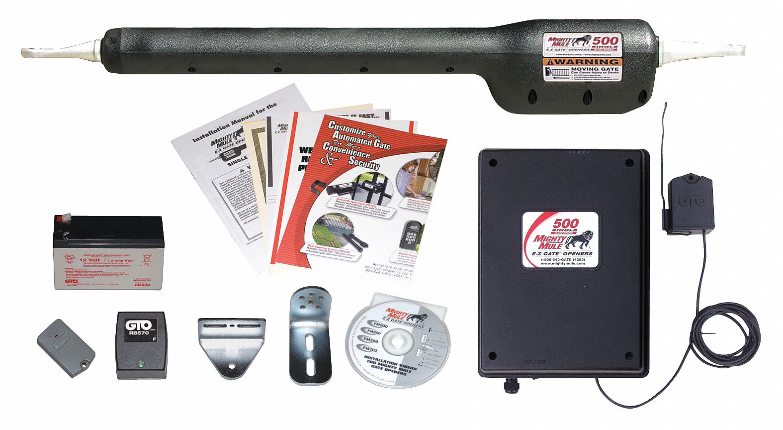 Mighty Mule Swing Gate Operator Kit Single 12vdc 55pk22 Mm571w Grainger
